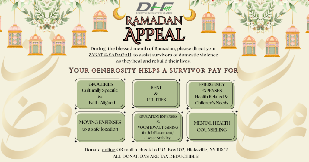 This Blessed Month of Ramadan, please direct your ZAKAT & SADAQAH to assist survivors of Domestic Violence as they heal and create safe futures.